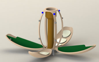 At intermediate depths, the aFish (artificial fish) swim in the water and exchange data and information with mussels and aPads (artificial lily pads), flat floating devices on the surface of the water, which act as the main points of contact with the human world, aside from providing energy to the entire system.